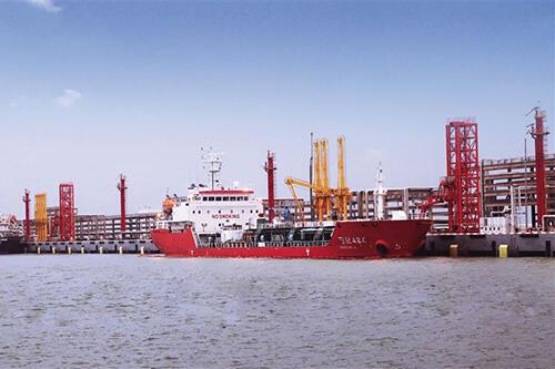 盛虹石化液体化工码头正在进行原料及产品装卸作业